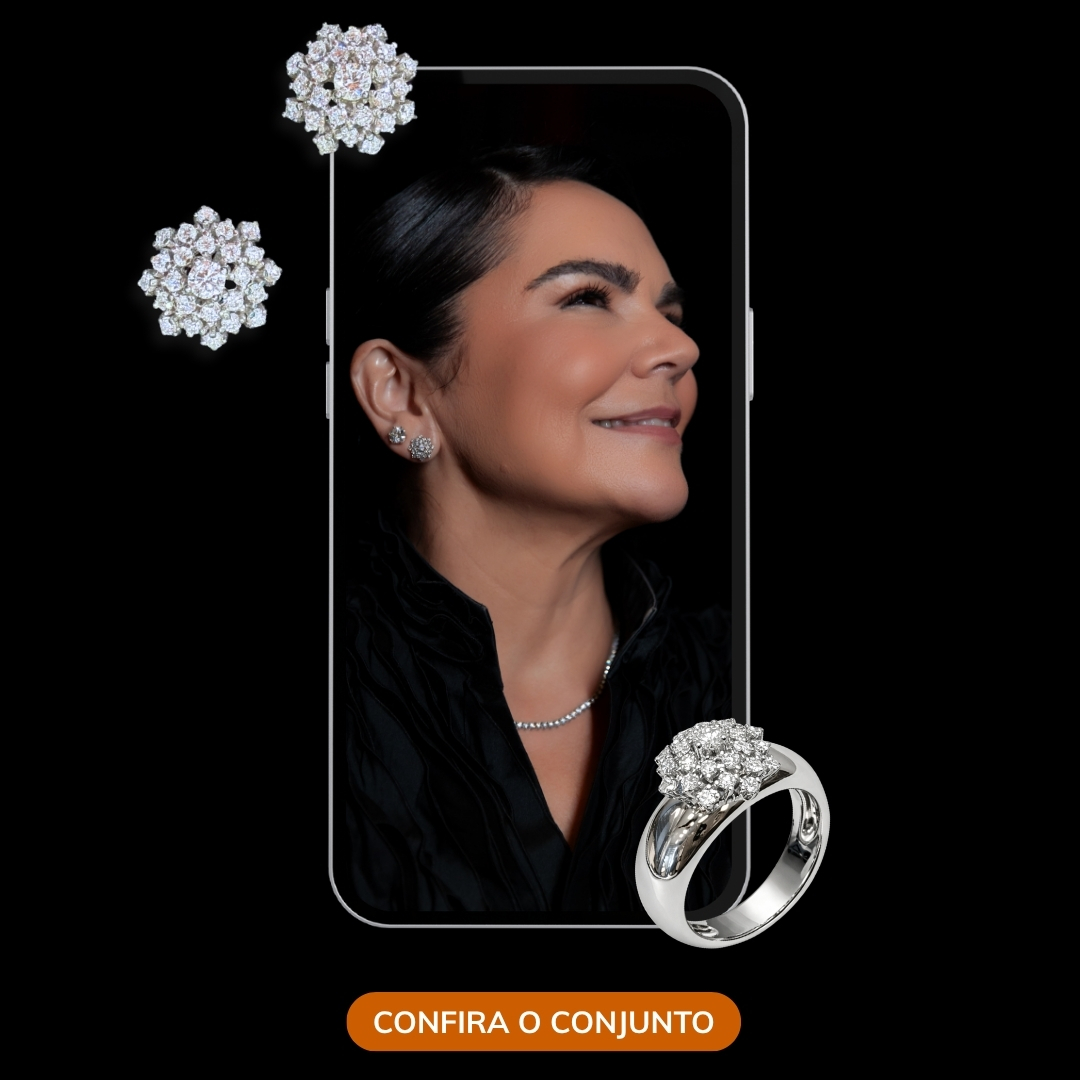 Elaine Palma marcou presença com diamantes de laboratório em seu conjunto de lançamento em design chuveiro, que une o brilho e a excelência do diamante tradicional com um diferencial essencial: sustentabilidade e inovação!